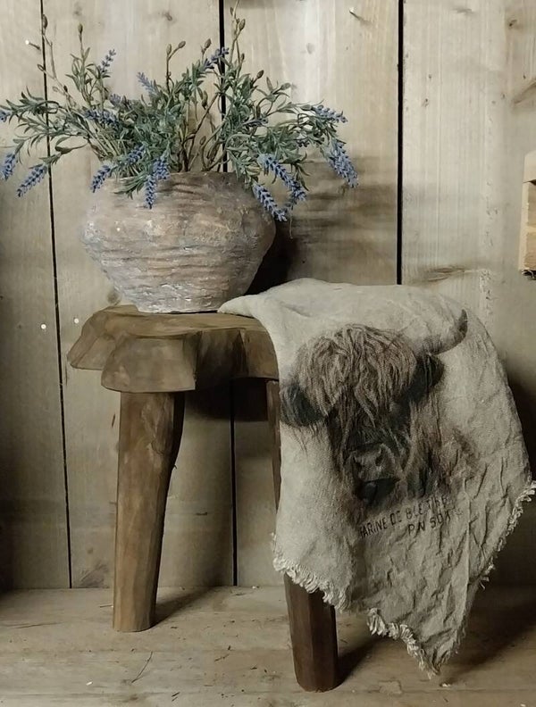 Zwaar massief houten krukje/tafeltje zo mooi om mee te decorenen met leuke accesoires.